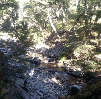Luego descenderemos al valle por dentro de un denso bosque hasta llegar al arroyo LLuvuco, donde la segunda y última cuesta del día entre arroyos y cascadas nos situará en la Laguna CAB o “Lluvu”, donde acamparemos para pasar la noche.