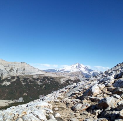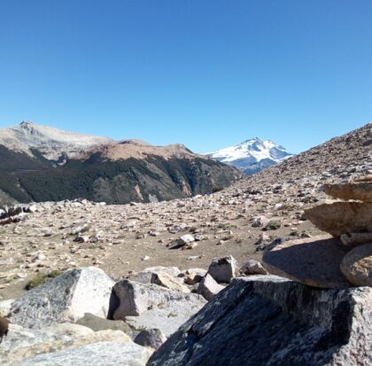 Luego del desayuno preparado por los guías y con todo nuestro equipo en la mochila, bordearemos la laguna trepando unos rocones y subiremos al filo del C° Bailey Willis, que nos recompensará con una primera vista del Volcán Tronador.