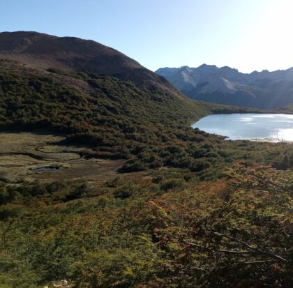 Allí terminan las subidas del día, nos quedará bajar y recorrer unos cuantos kilómetros más por el bosque que se vuelve más y más denso hasta la laguna Ilon. Haremos una merienda junto a la laguna, recobrando energías y charlaremos de todo lo recorrido hasta aquí.