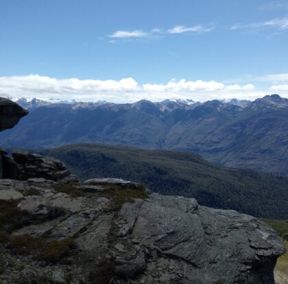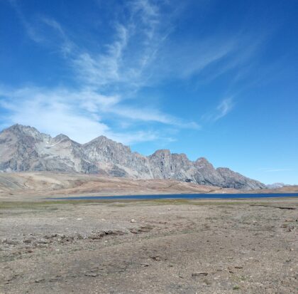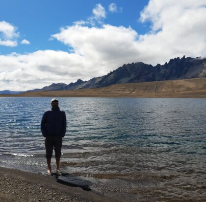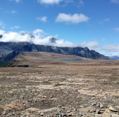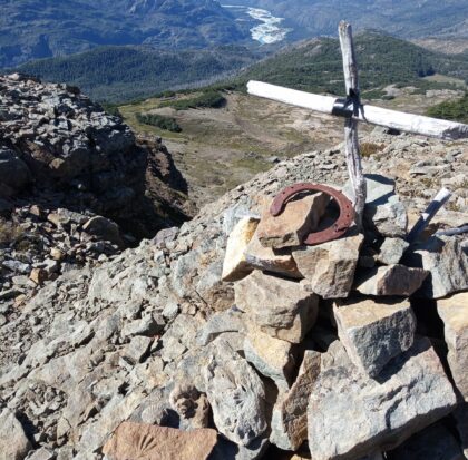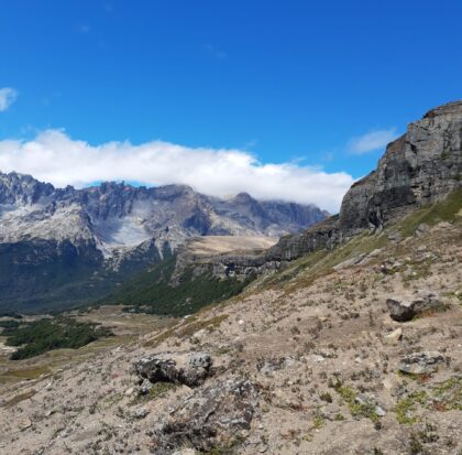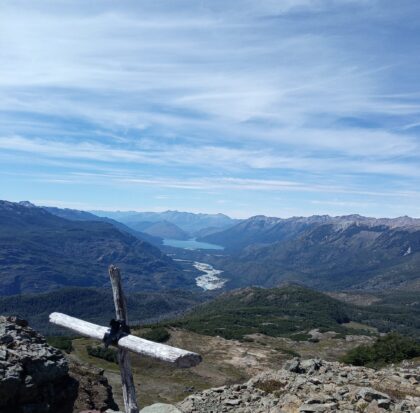 En la cumbre encontraremos una laguna de altura en un escenario imponente, rodeado de montañas y valles. Veremos la cordillera que separa Argentina y Chile, el Cerro Tres Picos, y por donde se mire plena Cordillera de los Andes.