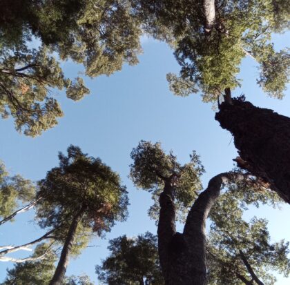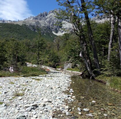 Allí iremos adentrándonos en el valle del Río Turbio, junto a la rivera por un tupido bosque de enormes Coihues.